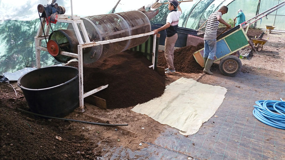 At the end of the 2nd year, the farm was producing more than 80 tonnes of top quality vermicompost by recycling around 500 m³ of manure annually.