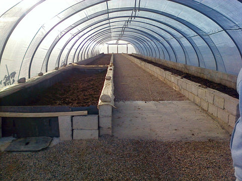 Greenhouse 2: 2 beds of 54m at ground level with a slight slope (0.2%)